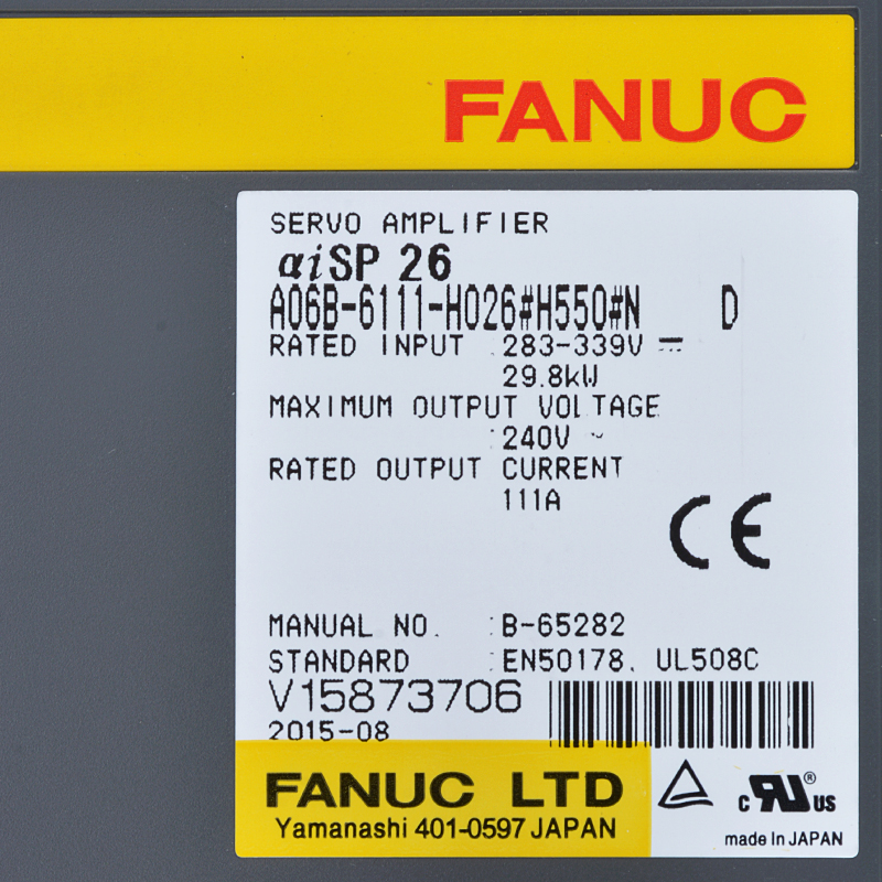 Fanuc Drive A06B - 6111 - H026 # H550 # N Fanuc αisp 26 Spindle Servo Amplifier Moudle
